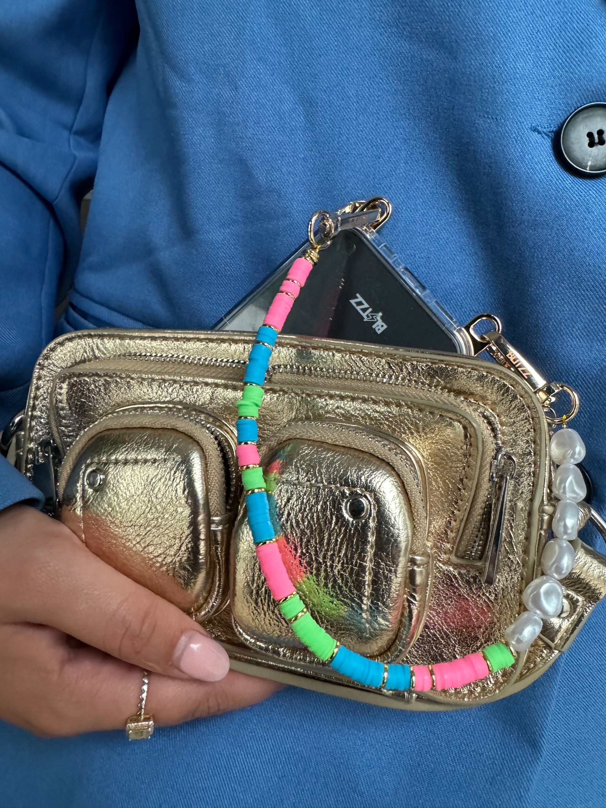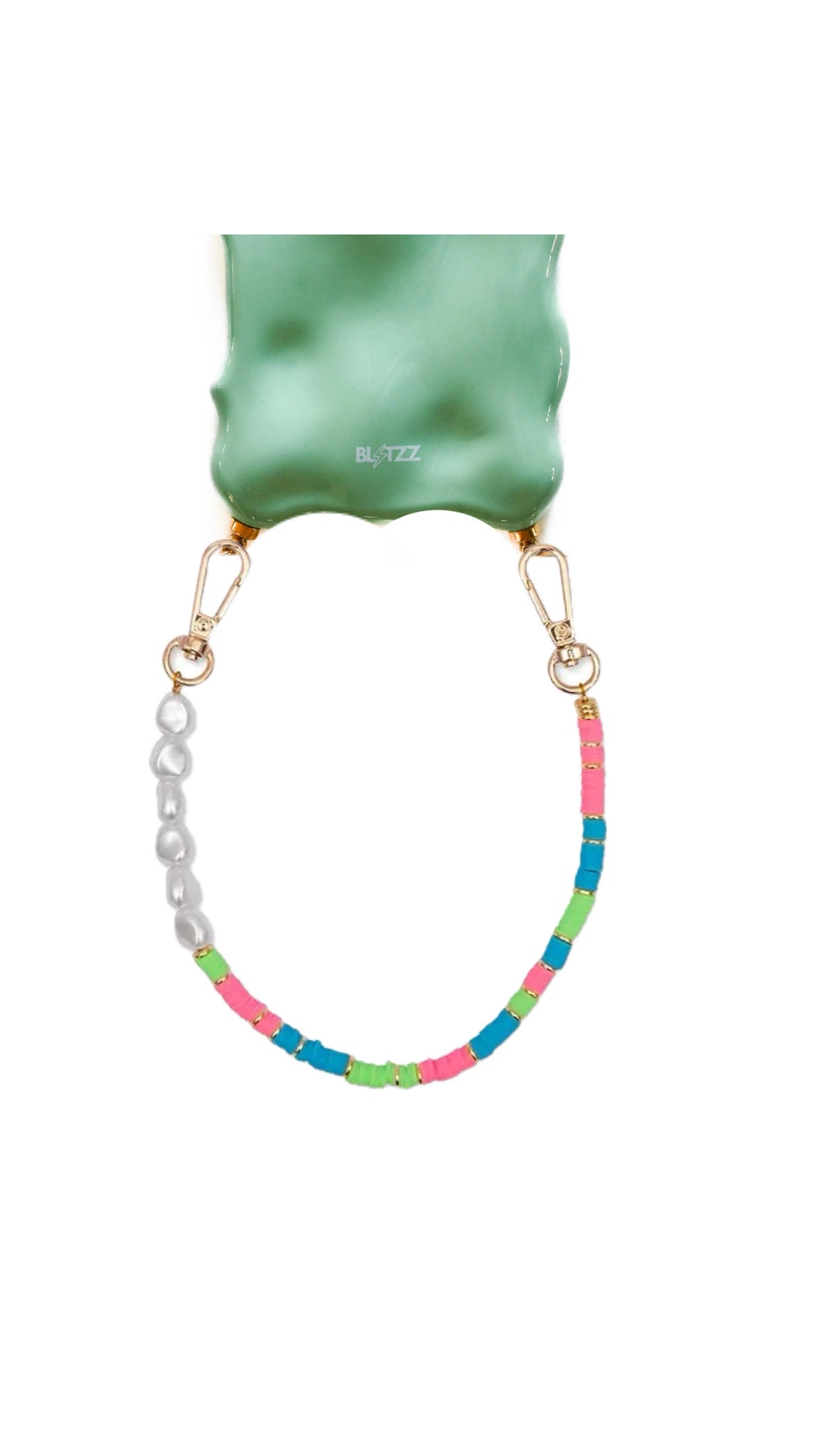 A Colorful Kiss! Breng kleur in je leven met de Colorful Kiss telefoonketting! Deze ketting heeft vrolijke kleuren en parels, perfect voor een speelse en trendy look.