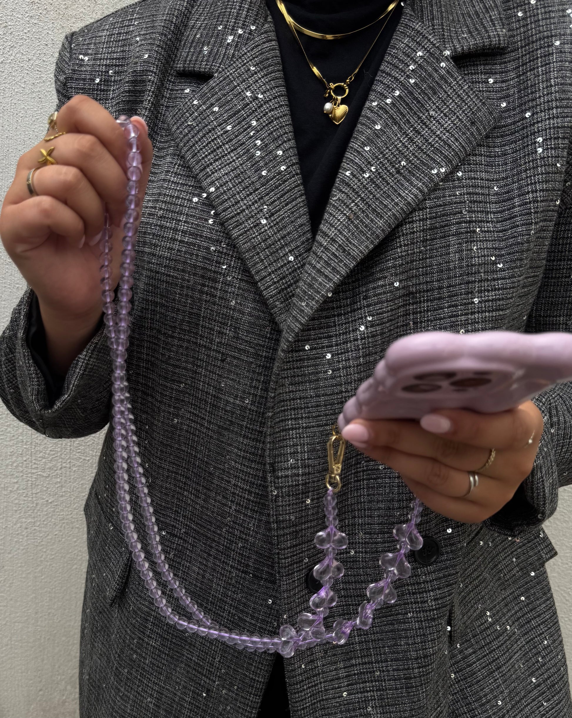 Perfect voor wie houdt van gemak en een finishing touch voor elke look! Of je nu onderweg bent, naar een feestje gaat of gewoon geen zin hebt om een tas mee te nemen, met deze ketting draag je je telefoon altijd stijlvol bij je. Geen zakken? Geen probleem. Geen tas mee? Geen zorgen. De Lots Of Love ketting is de ideale oplossing voor iedereen die z’n telefoon graag bij zich heeft, zonder in te leveren op stijl of comfort.
